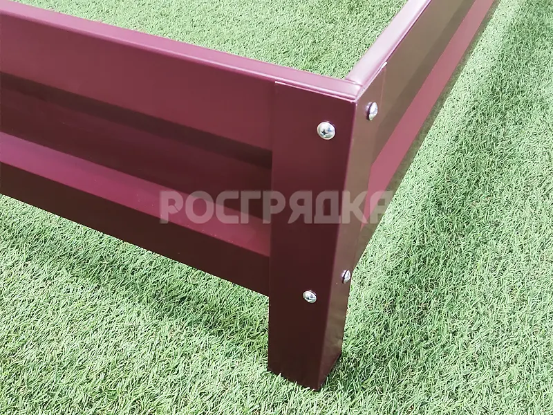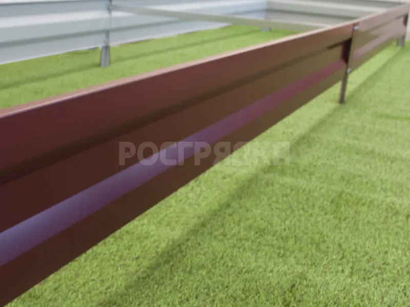 Грядки изготовлены из оцинкованного металла с полимерным покрытием толщиной 0,5 мм. Панели усилены 8 ребрами жесткости. Планка-стяжка через каждый 1 метр обеспечивает сохранность конструкции на долгие годы. Благодаря уникальной технологии, срок службы наших грядок составляет более 10 лет.