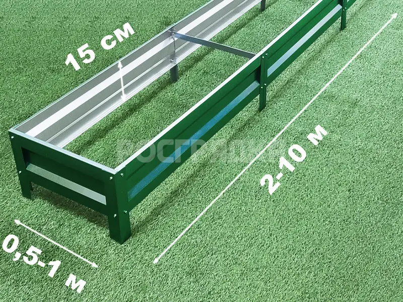 Грядки изготовлены из оцинкованного металла с полимерным покрытием толщиной 0,5 мм. Панели усилены 8 ребрами жесткости. Планка-стяжка через каждый 1 метр обеспечивает сохранность конструкции на долгие годы. Благодаря уникальной технологии, срок службы наших грядок составляет более 10 лет.